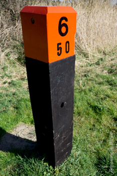 Op zowel de hoofd- als de hulppaal staat de afstand tot het startpunt vermeld. Op de kop van Goeree ligt het startpunt ter hoogte van