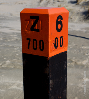Hoofdpaal op Rijksstrandpalenlijn (0-lijn) op 6 km en 500 m vanaf startpunt t.h.v. Stellendam.
